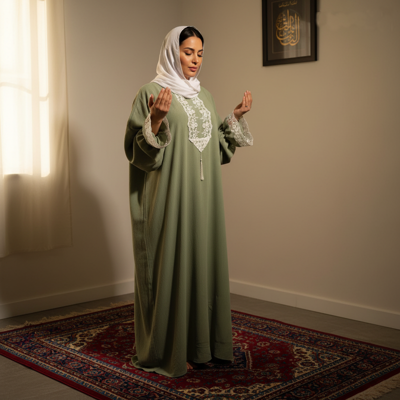صُنع طاقم الصلاة من قماش ناعم وخفيف يمنحك إحساساً مريحاً طوال فترة الاستخدام. الخامة لطيفة على البشرة وتوفر تهوية ممتازة، مما يجعلها مناسبة للصلاة في جميع الفصول.