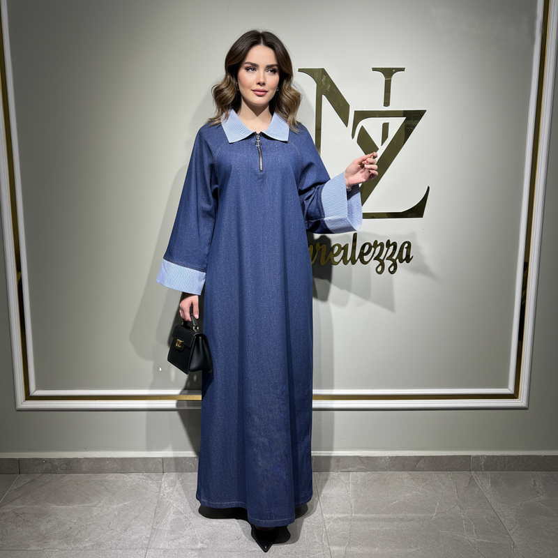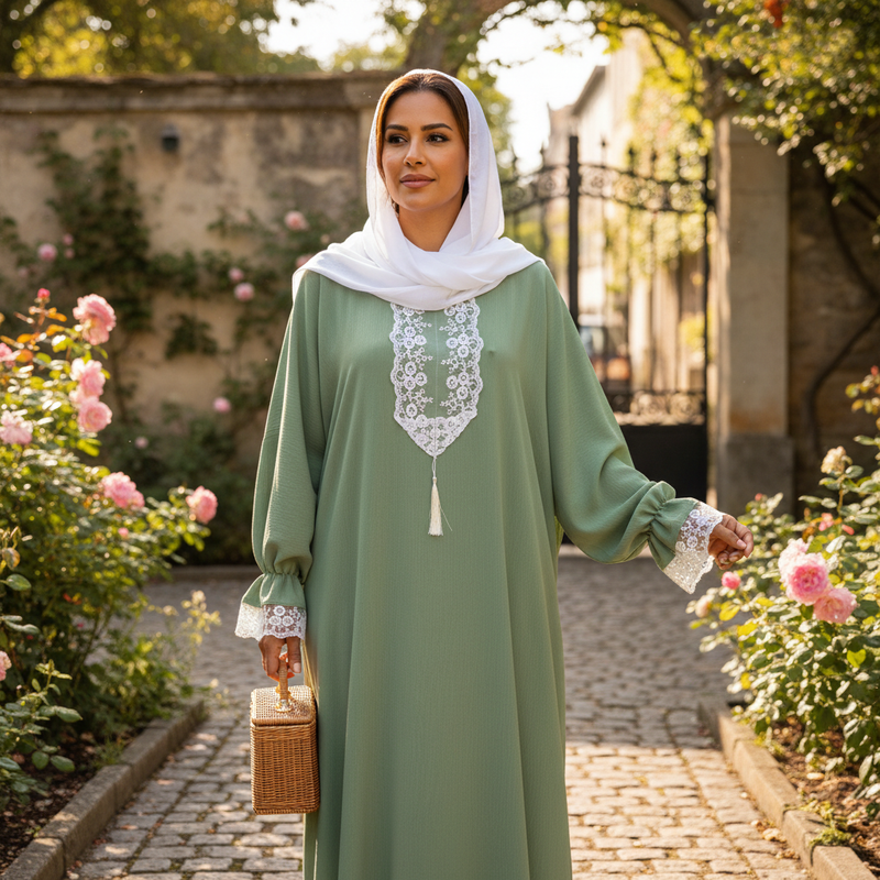 يأتي الطاقم بتصميم واسع وانسيابي يضمن الحرية الكاملة في الحركة مع المحافظة على المحتشمية. تفاصيله البسيطة تمنحه لمسة أناقة دون مبالغة، مما يجعله مناسباً لكل امرأة تبحث عن الراحة والجمال في آنٍ واحد.